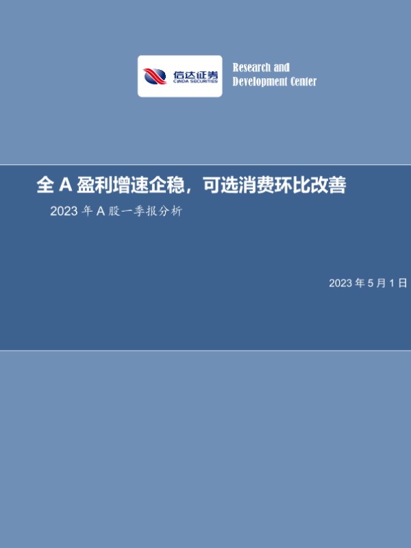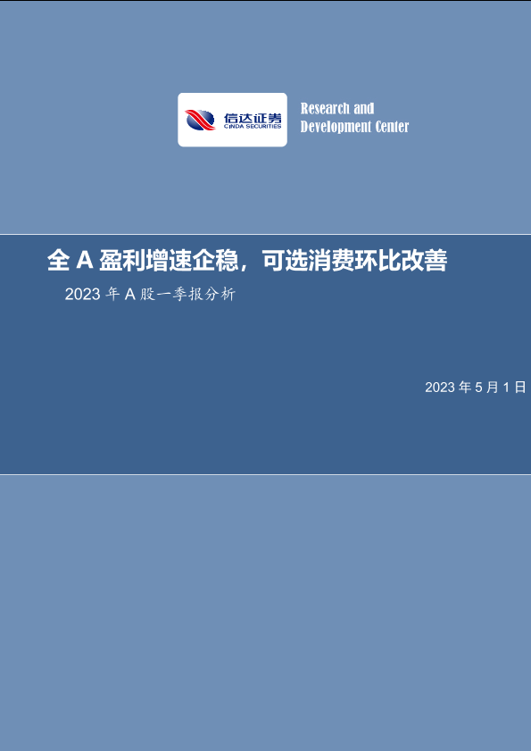 【信达证券】【20230501】2023年A股一季报分析:全A盈利增速企稳,可选消费环比改善-30页