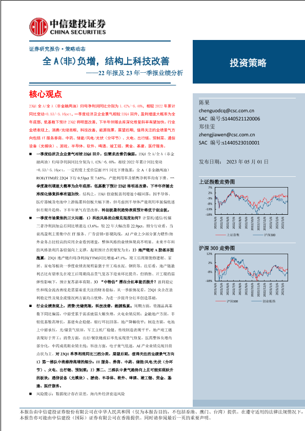 【中信建投证券】【20230501】22年报及23年一季报业绩分析:全A(非)负增,结构上科技改善-22页