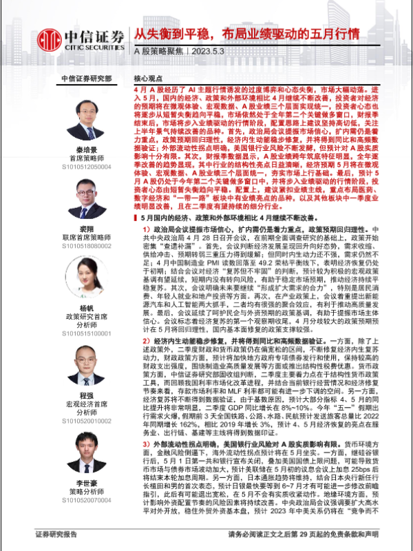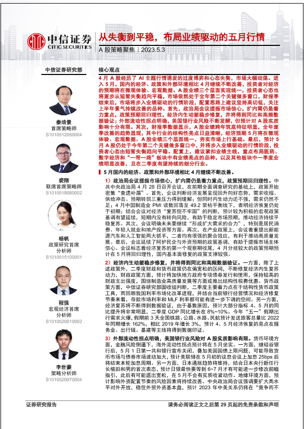 【中信证券】【20230503】A股策略聚焦:从失衡到平稳,布局业绩驱动的五月行情-30页