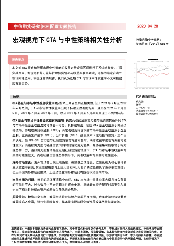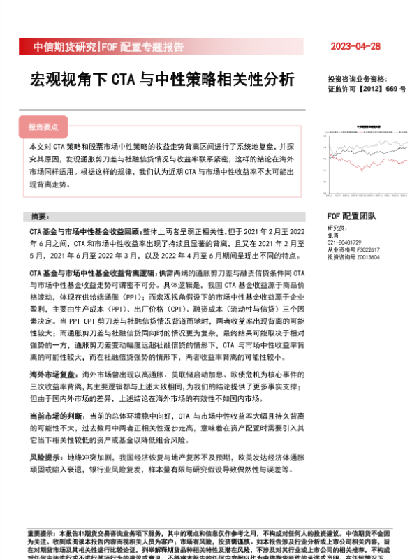 【中信期货】【20230428】FOF配置专题报告:宏观视角下CTA与中性策略相关性分析-20页