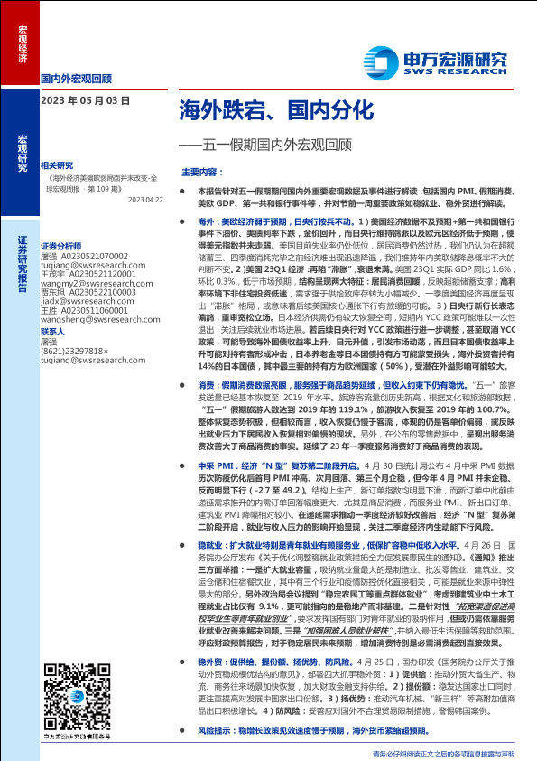 【申万宏源】【20230503】五一假期国内外宏观回顾:海外跌宕、国内分化-32页