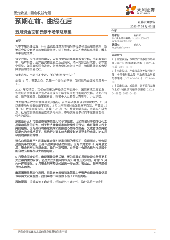 【天风证券】【20230503】五月资金面和债券市场策略展望:预期在前,曲线在后-25页