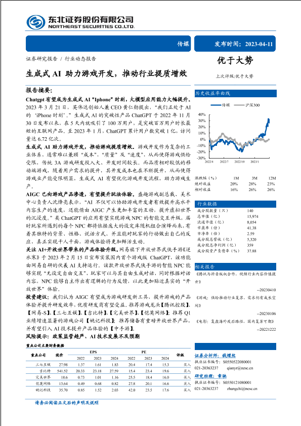 【东北证券】【20230411】生成式AI助力游戏开发,推动行业提质增效-16页