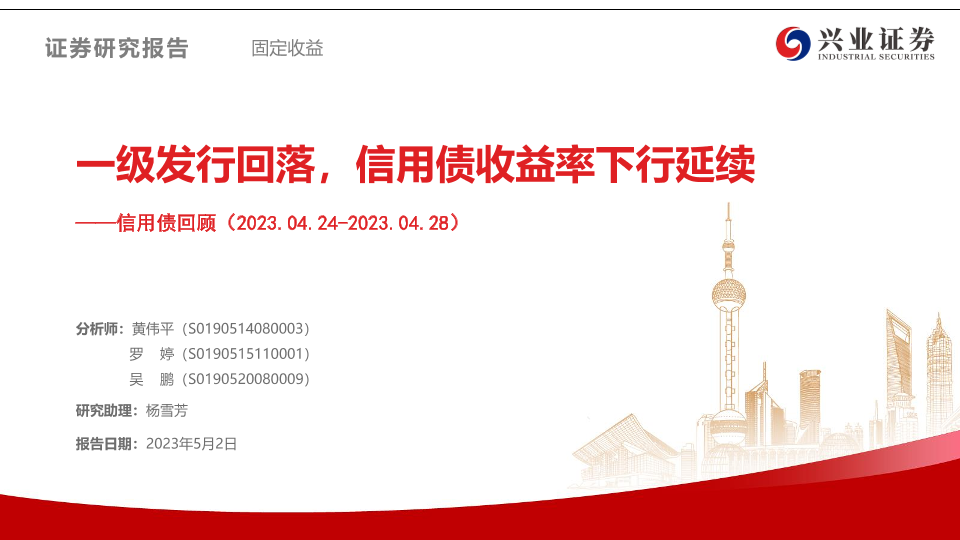【兴业证券】【20230502】信用债回顾:一级发行回落,信用债收益率下行延续-37页