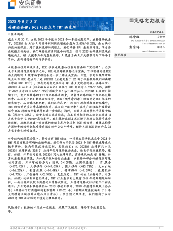【安信证券】【20230503】关键的关键:ROE的拐点与TMT的兑现-40页