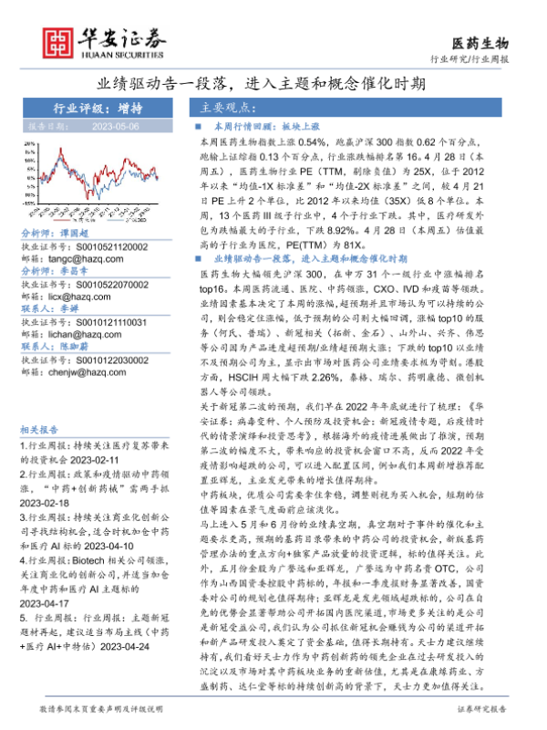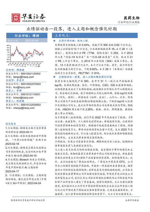 【华安证券】【20230506】医药生物行业周报:业绩驱动告一段落,进入主题和概念催化时期-35页