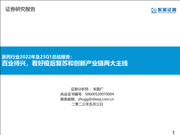 【东吴证券】【20230503】医药行业2022年及23Q1总结报告:百业待兴,看好疫后复苏和创新产业链两大主线-79页