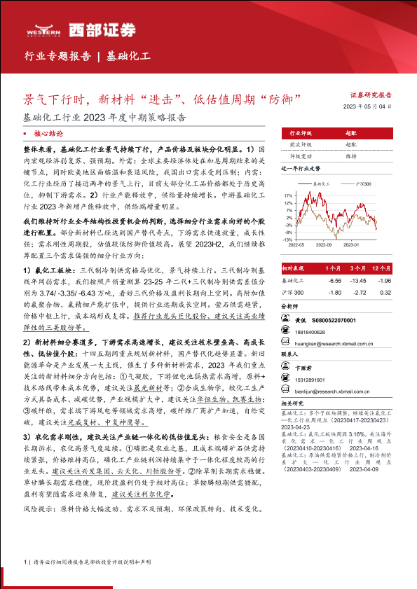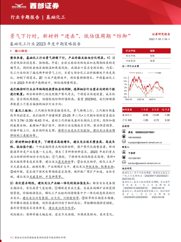 【西部证券】【20230504】基础化工行业2023年度中期策略报告:景气下行时,新材料“进击”、低估值周期“防御”-46页