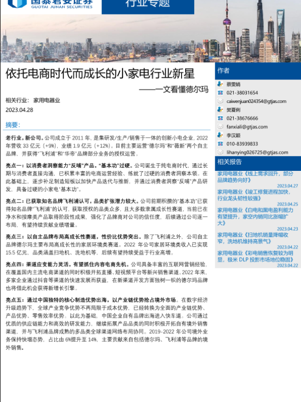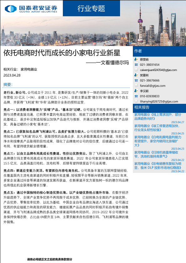 【国泰君安证券】【20230428】依托电商时代而成长的小家电行业新星——一文看懂德尔玛-27页