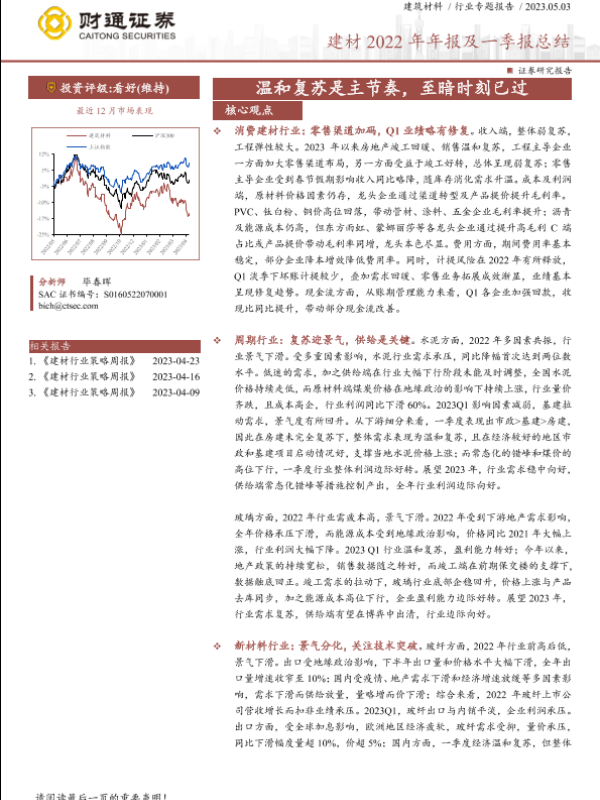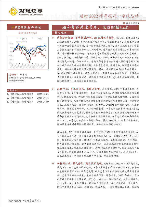【财通证券】【20230503】建材行业2022年年报及一季报总结:温和复苏是主节奏,至暗时刻已过-42页