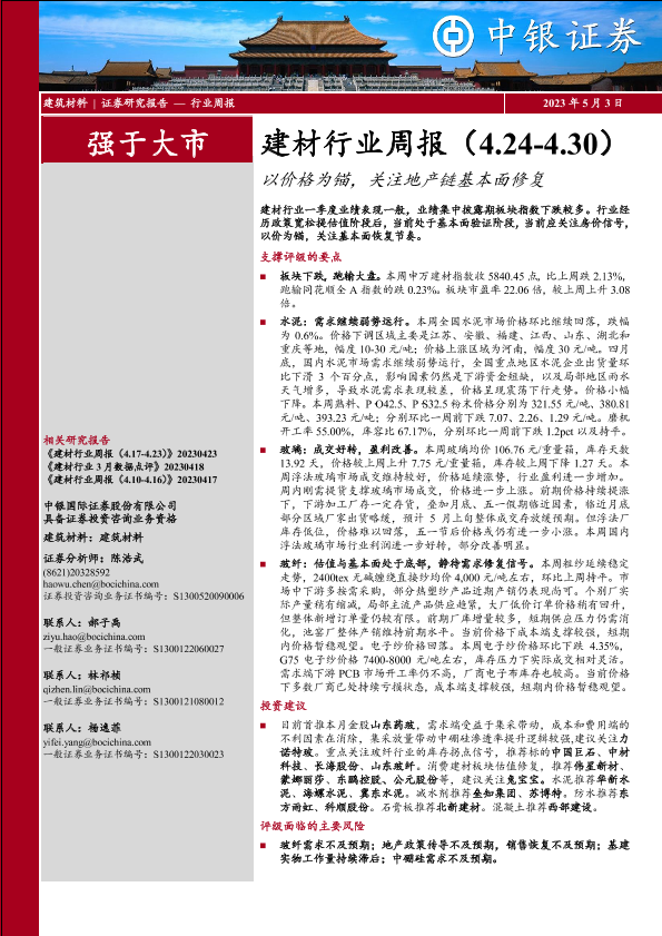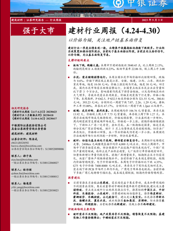 【中银证券】【20230503】建材行业周报:以价格为锚,关注地产链基本面修复-22页