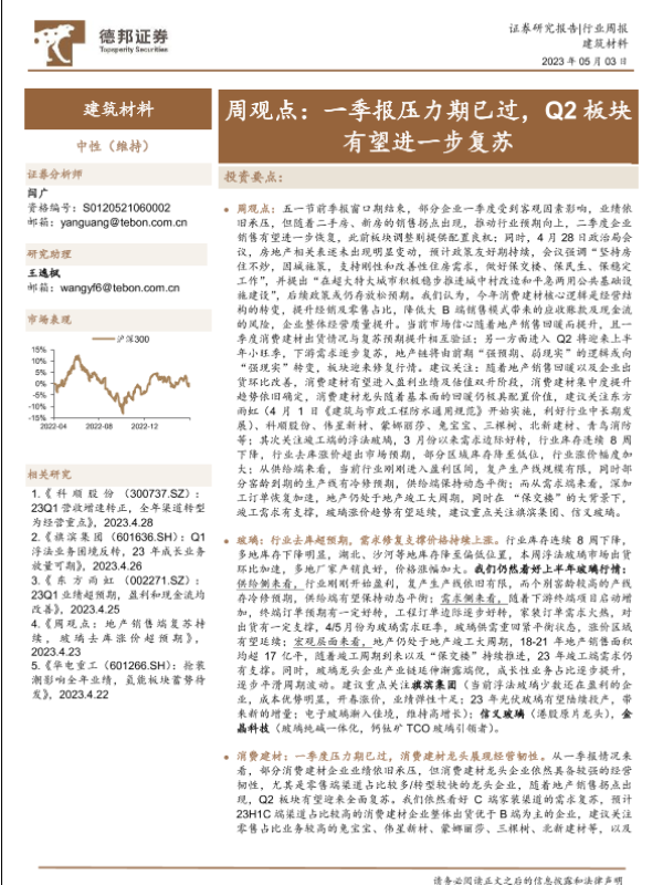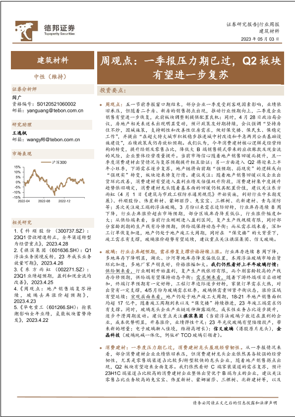 【德邦证券】【20230503】建筑材料周观点:一季报压力期已过,Q2板块有望进一步复苏-29页