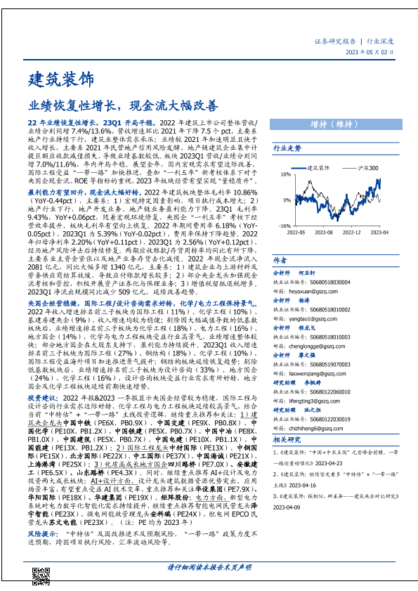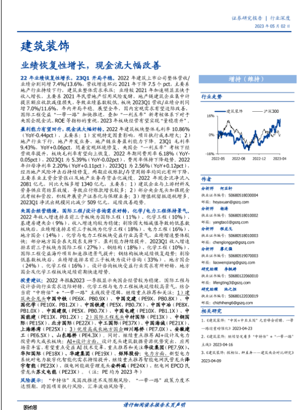 【国盛证券】【20230502】建筑装饰行业:业绩恢复性增长,现金流大幅改善-59页