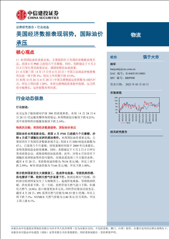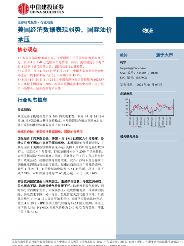 【中信建投证券】【20230503】物流行业:美国经济数据表现弱势,国际油价承压-20页
