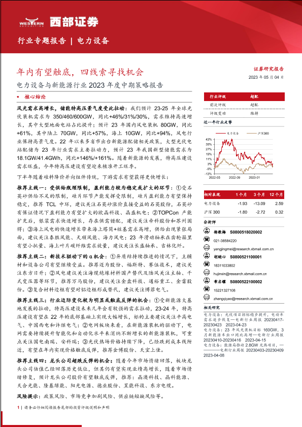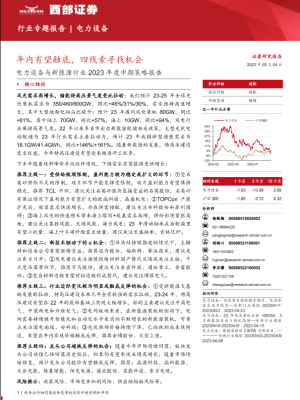 【西部证券】【20230504】电力设备与新能源行业2023年度中期策略报告:年内有望触底,四线索寻找机会-96页