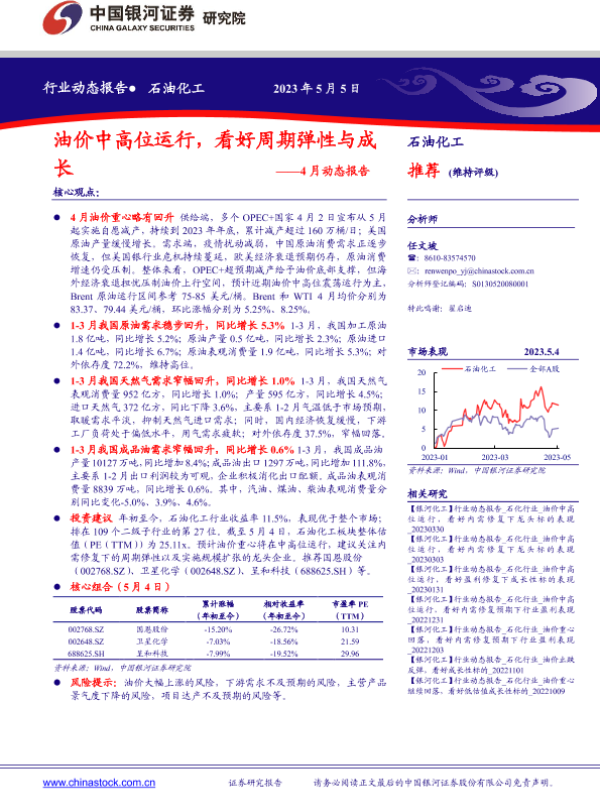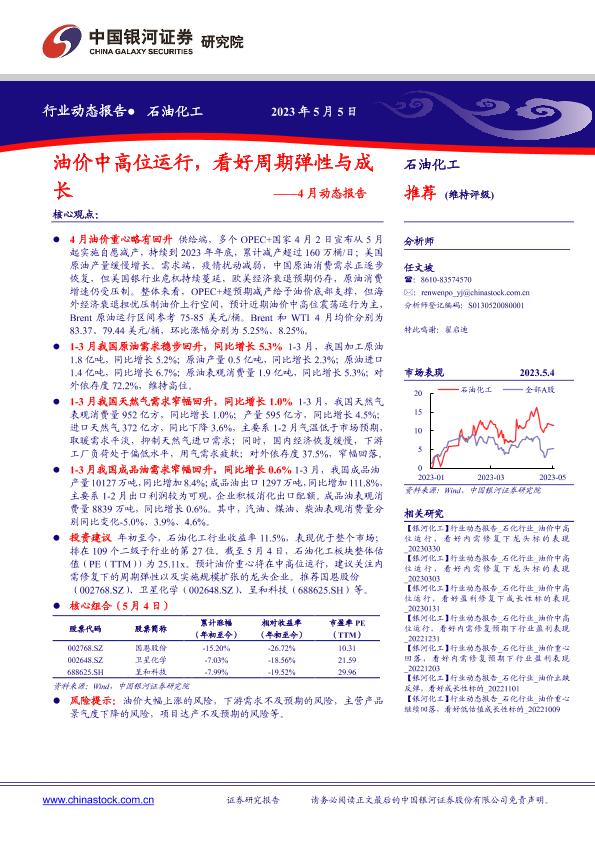 【银河证券】【20230505】石油化工行业4月动态报告:油价中高位运行,看好周期弹性与成长-24页