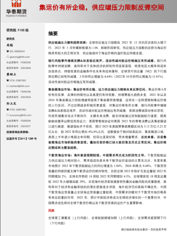 【华泰期货】【20230503】航运专题报:集运价有所企稳,供应端压力限制反弹空间-26页