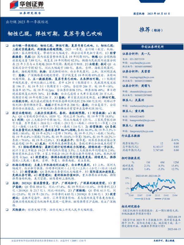 【华创证券】【20230503】航空机场行业出行链2023年一季报综述:韧性已现,弹性可期,复苏号角已吹响-26页