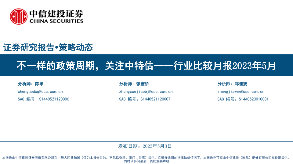 【中信建投证券】【20230503】行业比较月报2023年5月:不一样的政策周期,关注中特估-40页