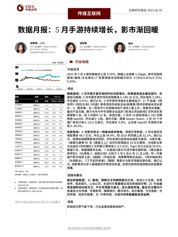 【中金公司】【20210616】传媒互联网行业数据月报:5月手游持续增长,影市渐回暖-25页
