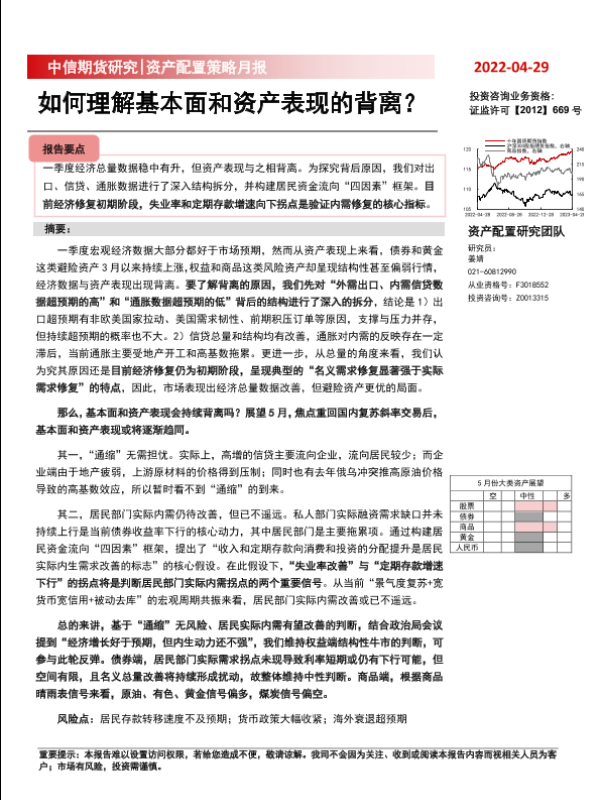 【中信期货】【20230429】资产配置策略月报:如何理解基本面和资产表现的背离?-26页