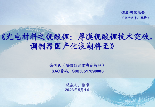 【海通证券】【20230501】通信行业:光电材料之铌酸锂,薄膜铌酸锂技术突破,调制器国产化浪潮将至-43页