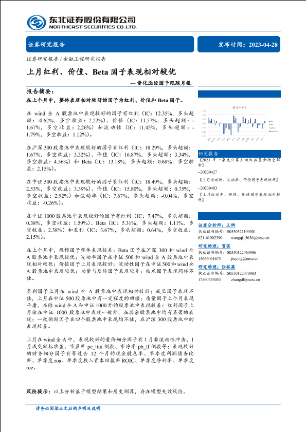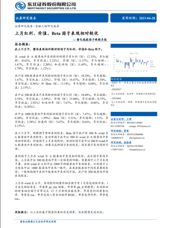 【东北证券】【20230428】量化选股因子跟踪月报:上月红利、价值、Beta因子表现相对较优-39页