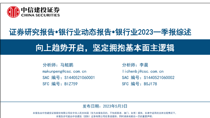 【中信建投证券】【20230503】银行业2023一季报综述:向上趋势开启,坚定拥抱基本面主逻辑-39页