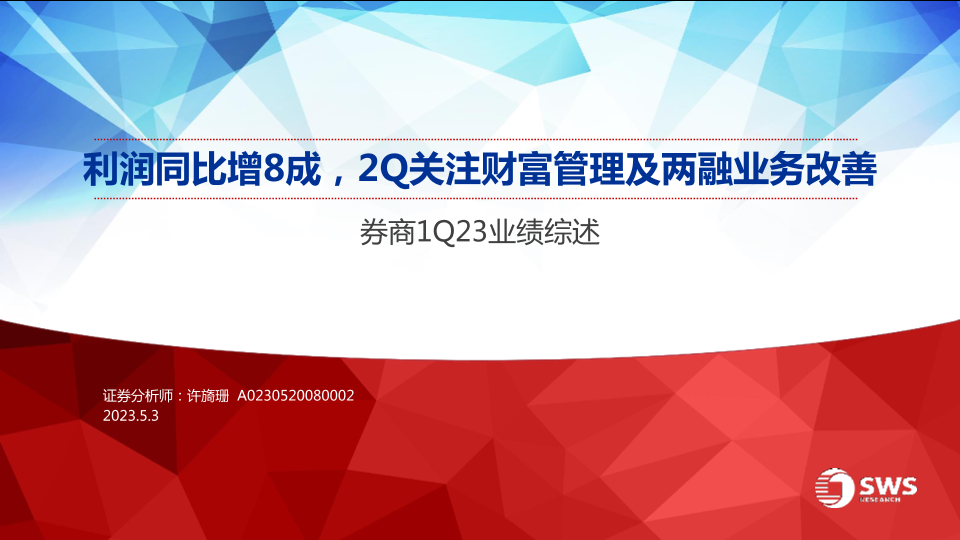【申万宏源】【20230503】非银金融行业券商1Q23业绩综述:利润同比增8成,2Q关注财富管理及两融业务改善-26页