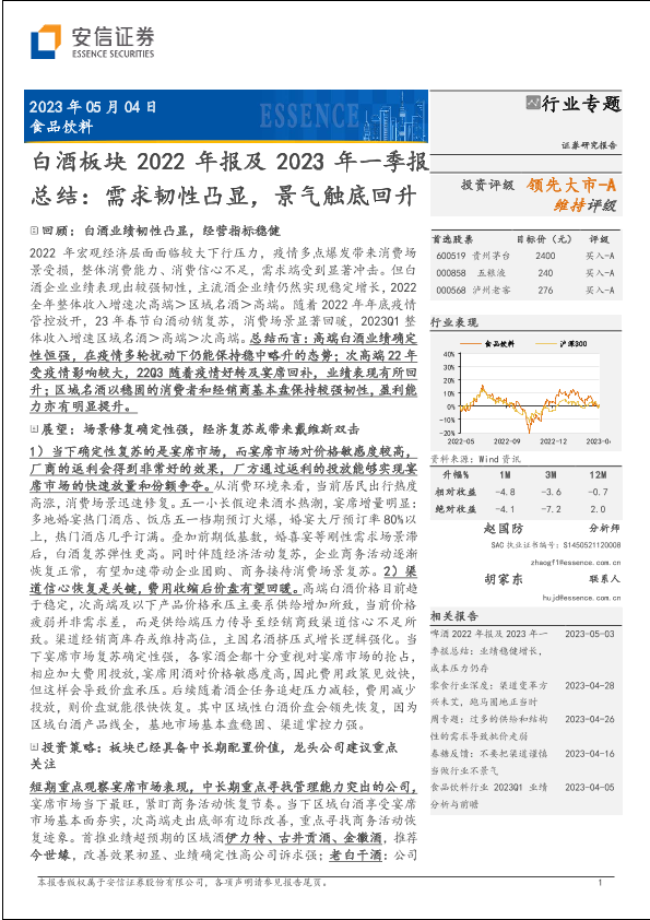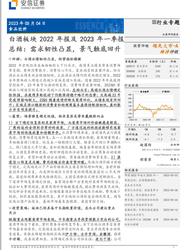 【安信证券】【20230504】食品饮料行业白酒板块2022年报及2023年一季报总结:需求韧性凸显,景气触底回升-20页