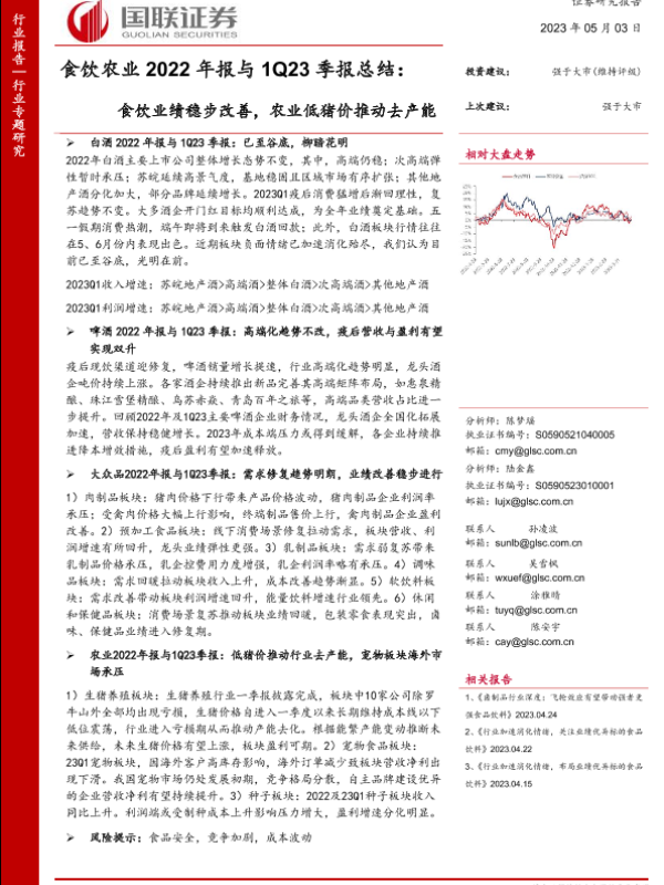 【国联证券】【20230503】食饮农业2022年报与1Q23季报总结:食饮业绩稳步改善,农业低猪价推动去产能-39页
