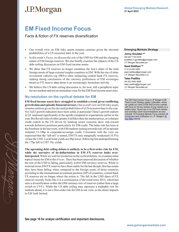 【J.P. Morgan】【20230427】Morgan Econ FI-EM Fixed Income Focus Facts fiction of FX reserves divergence-21页