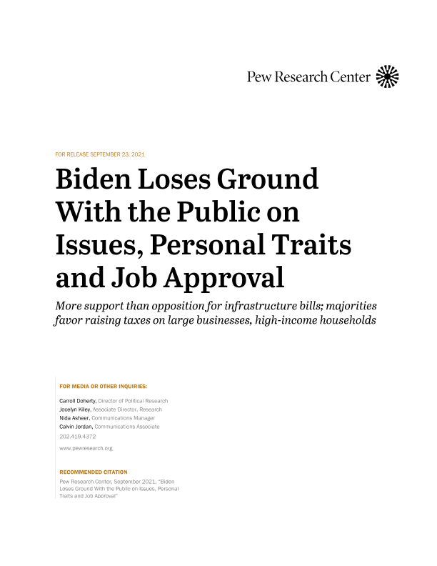 【Pew Research Center】【20210923】Biden Loses Ground With the Public on Issues, Personal Traits and Job Approval-47页