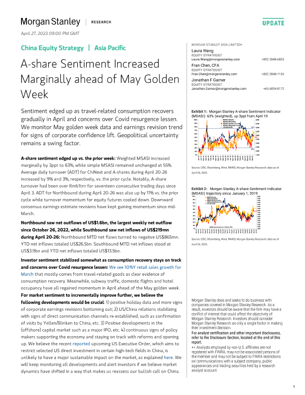 【Morgan Stanley】【20230427】China Equity Strategy - A-share Sentiment Increased Marginally Ahead of May Golden Week-11页