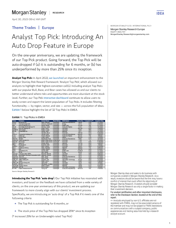 【Morgan Stanley】【20230430】Theme Trades Analyst Top Pick Introducing An Auto Drop Feature in Europe-47页