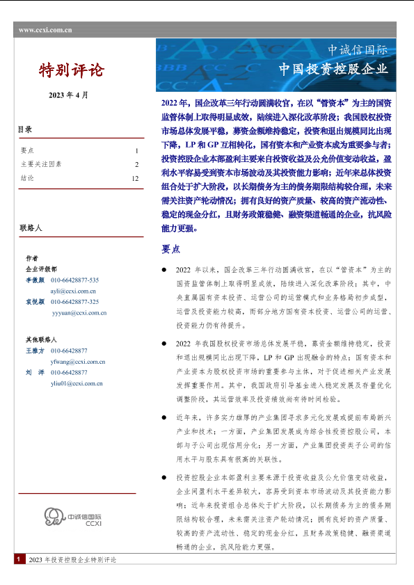 【中诚信国际】【20230401】中诚信-中国投资控股企业特别评论 2023.4-13页