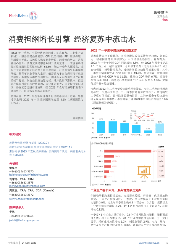 【惠誉博华】【20230424】消费担纲增长引擎 经济复苏中流击水-8页
