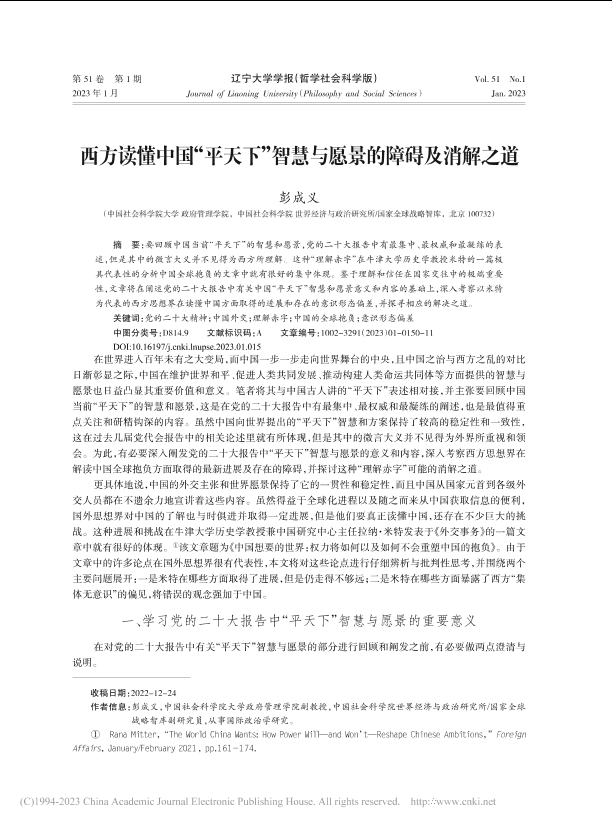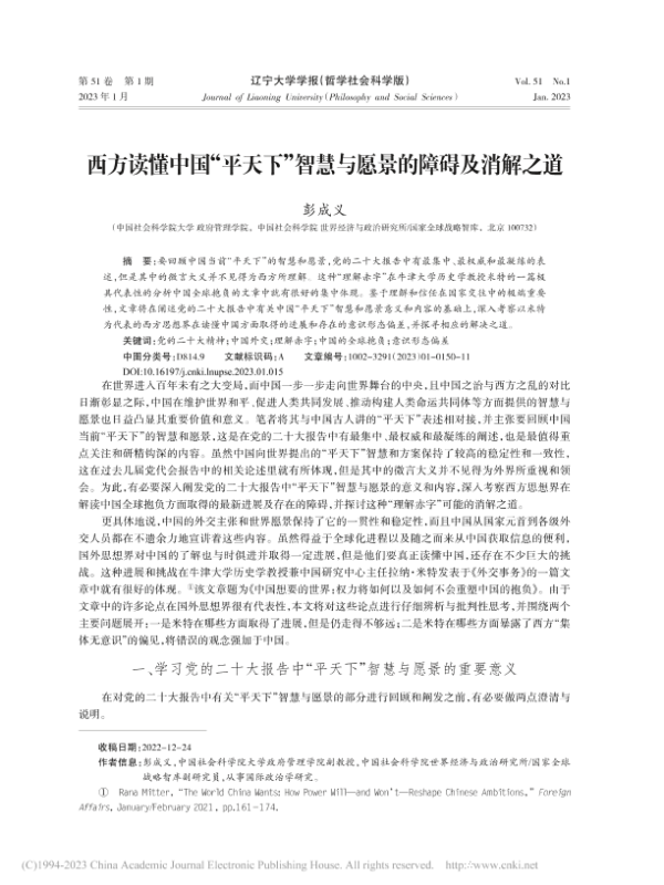 【中国社会科学院大学政府管理学院,中国社会科学院世界经济与政治研究所/国家全球战略智库】【20230101】西方读懂中国“平天下”智慧与愿景的障碍及消解之道-11页