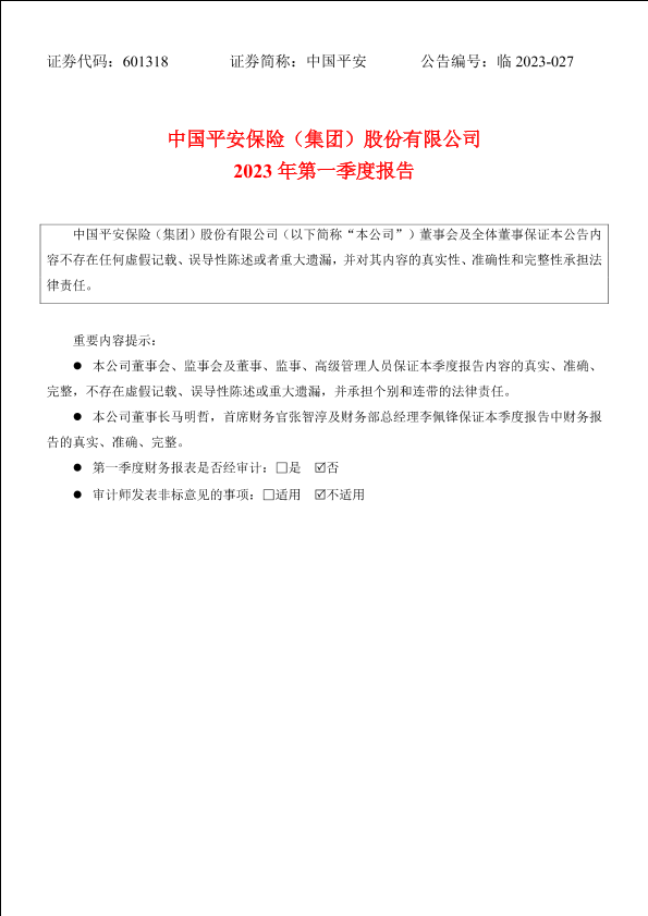 【中国平安保险(集团)股份有限公司】【20230426】中国平安2023年第一季度报告-27页
