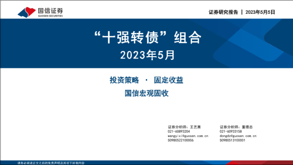 【国信证券】【20230505】2023年5月“十强转债”组合-30页
