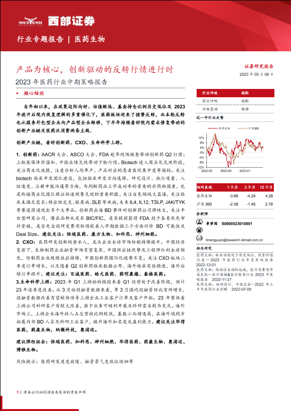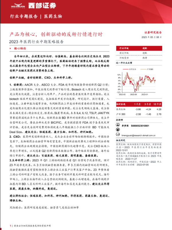 【西部证券】【20230508】2023年医药行业中期策略报告:产品为核心,创新驱动的反转行情进行时-55页