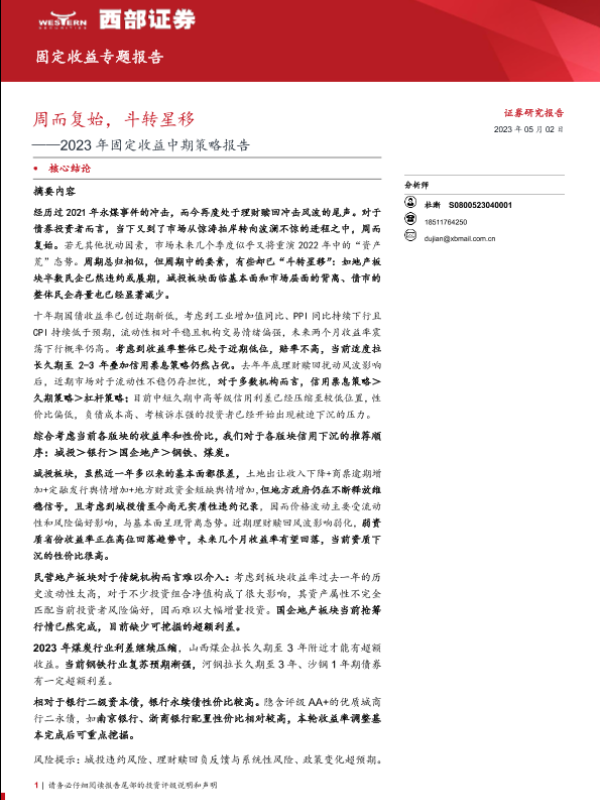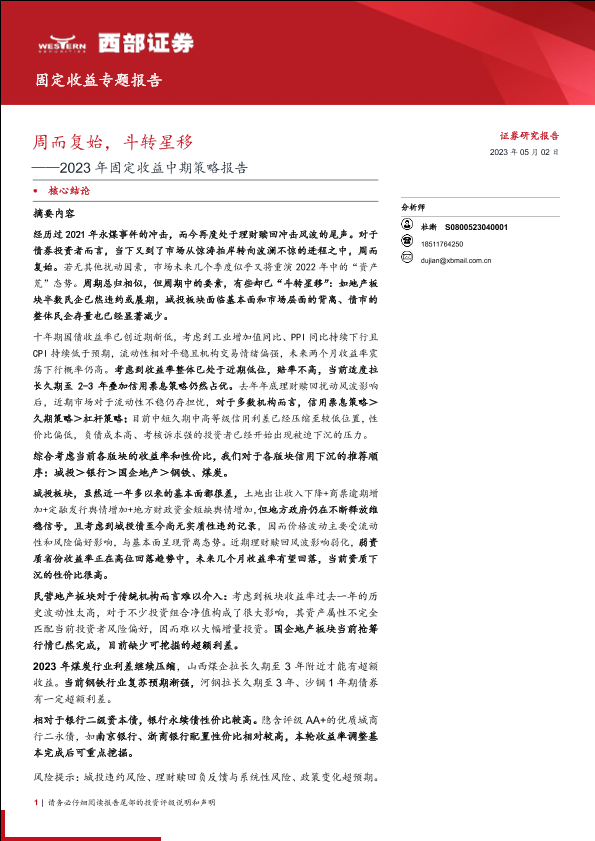 【西部证券】【20230502】2023年固定收益中期策略报告:周而复始,斗转星移-25页