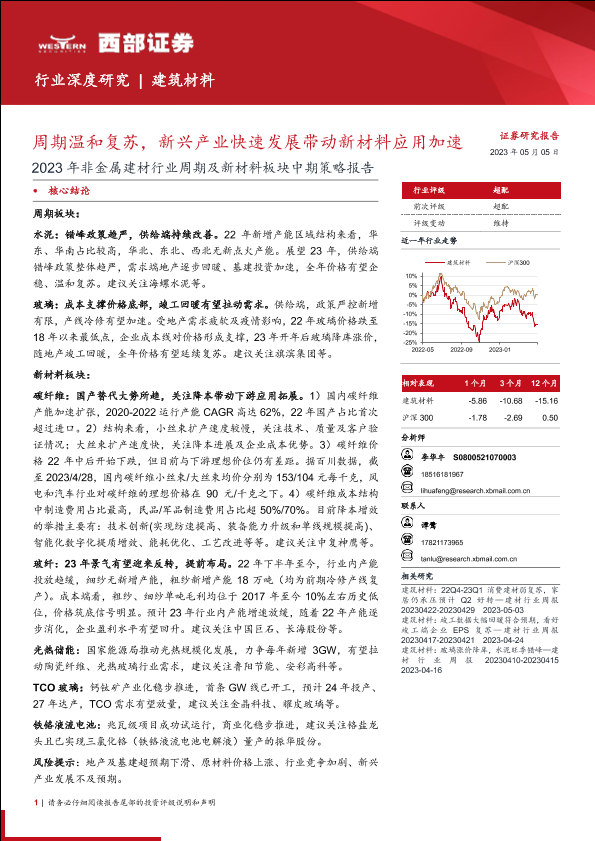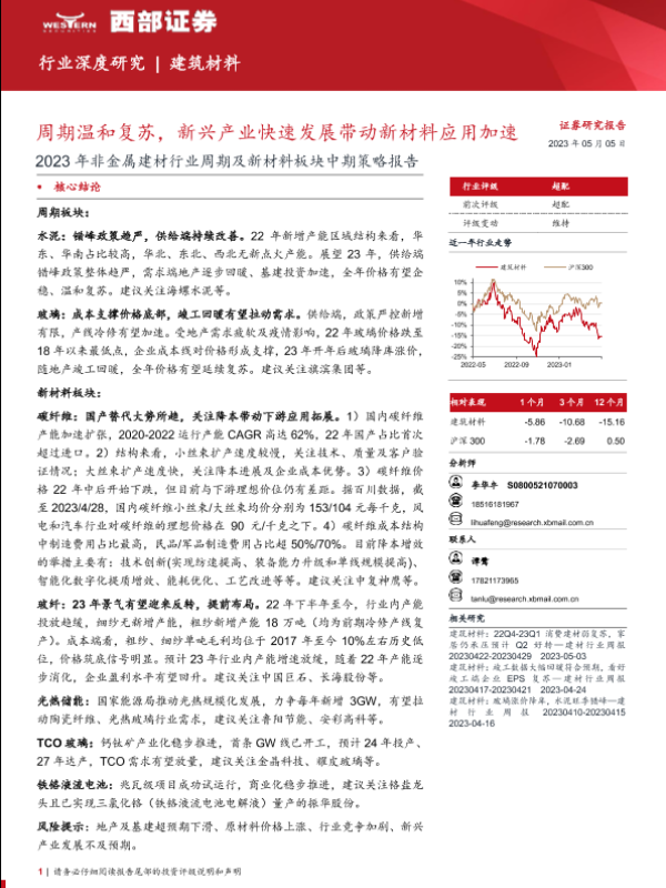 【西部证券】【20230505】2023年非金属建材行业周期及新材料板块中期策略报告:周期温和复苏,新兴产业快速发展带动新材料应用加速-53页