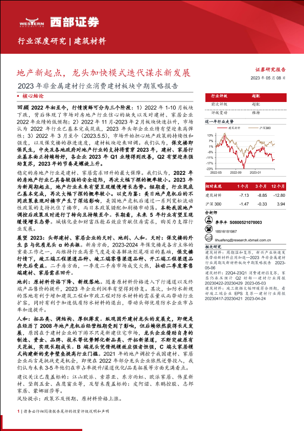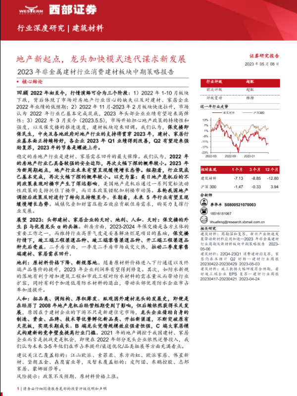 【西部证券】【20230508】2023年非金属建材行业消费建材板块中期策略报告:地产新起点,龙头加快模式迭代谋求新发展-29页