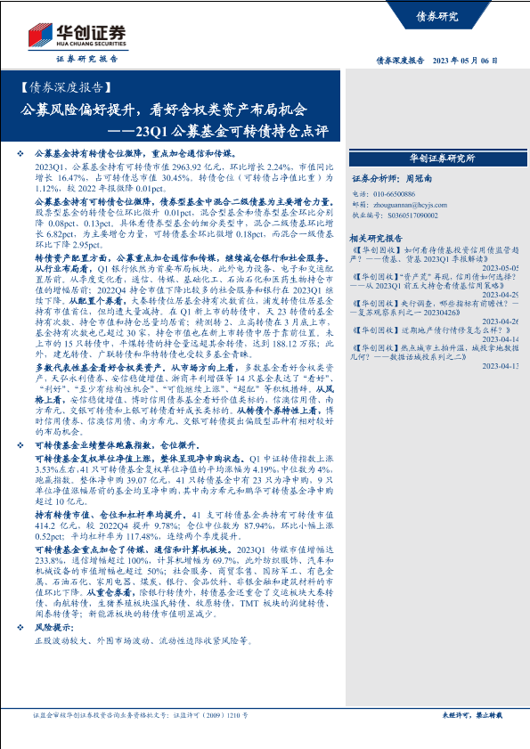 【华创证券】【20230506】23Q1公募基金可转债持仓点评:公募风险偏好提升,看好含权类资产布局机会-22页