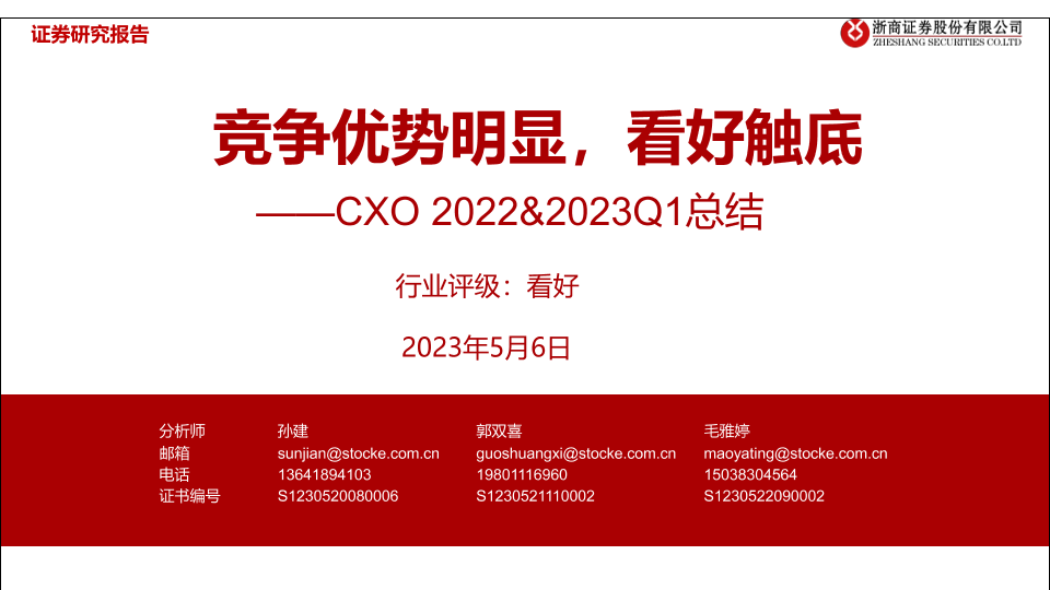 【浙商证券】【20230506】CXO 2022&2023Q1总结:竞争优势明显,看好触底-29页