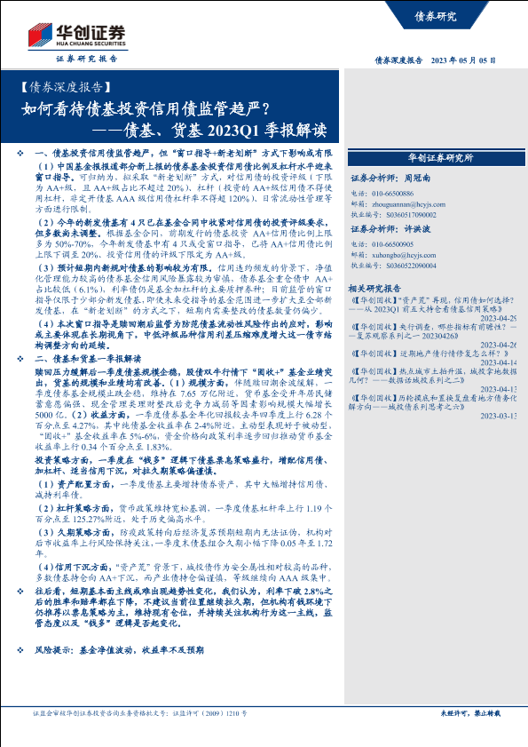 【华创证券】【20230505】债基、货基2023Q1季报解读:如何看待债基投资信用债监管趋严?-31页