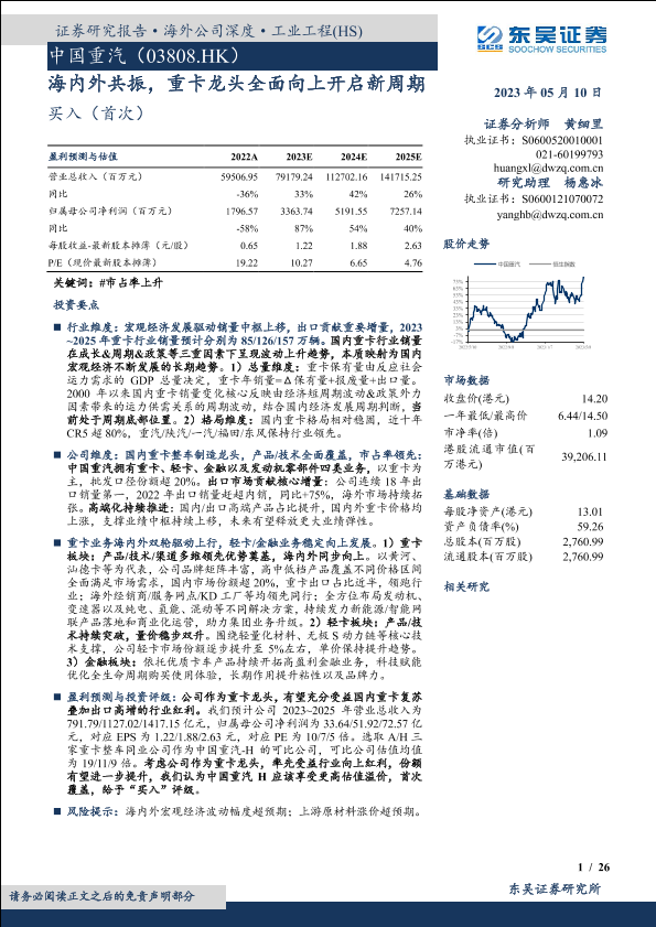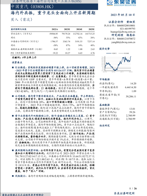 【东吴证券】【20230510】中国重汽03808.HK海内外共振,重卡龙头全面向上开启新周期-26页