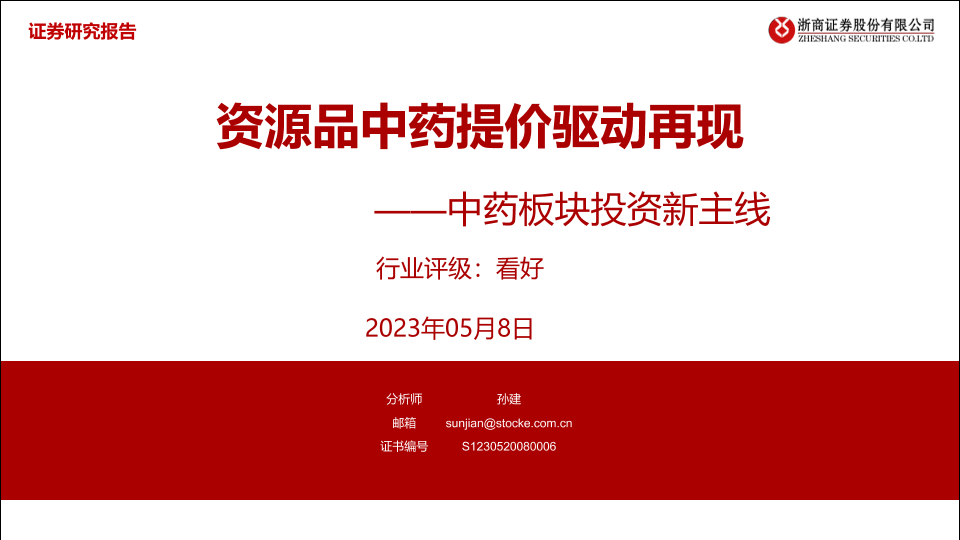 【浙商证券】【20230508】中药板块投资新主线:资源品中药提价驱动再现-22页
