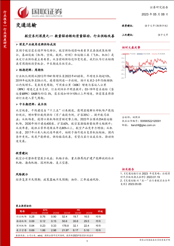 【国联证券】【20230508】交通运输行业航空系列深度之一:数量驱动转向质量驱动,行业供给改善-33页